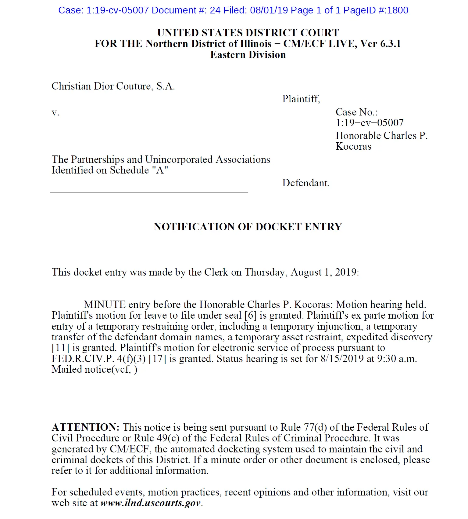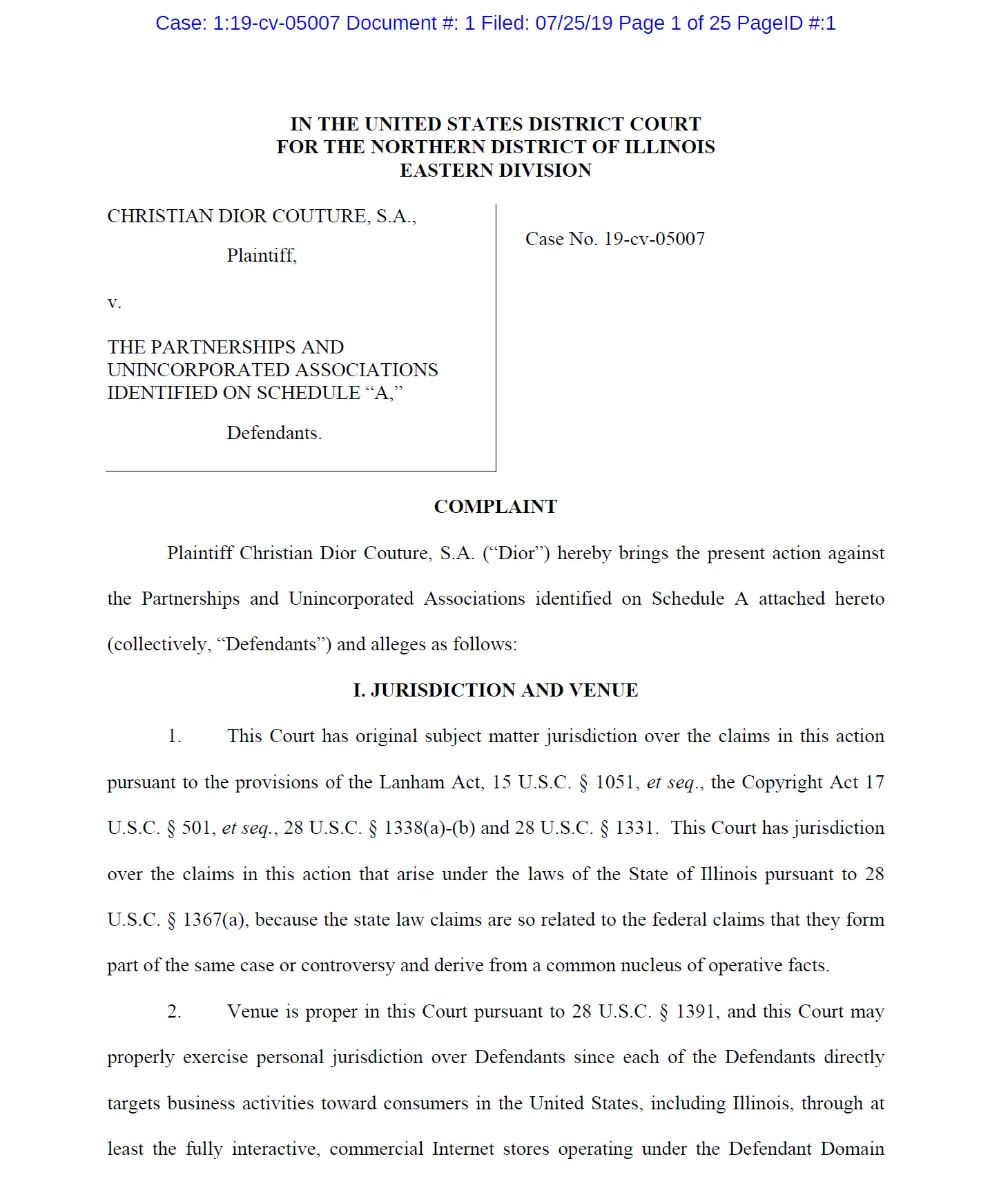 Christian Dior Couture, S.A. v The Partnerships and Unincorporated Associations Identified on Schedule “A”.