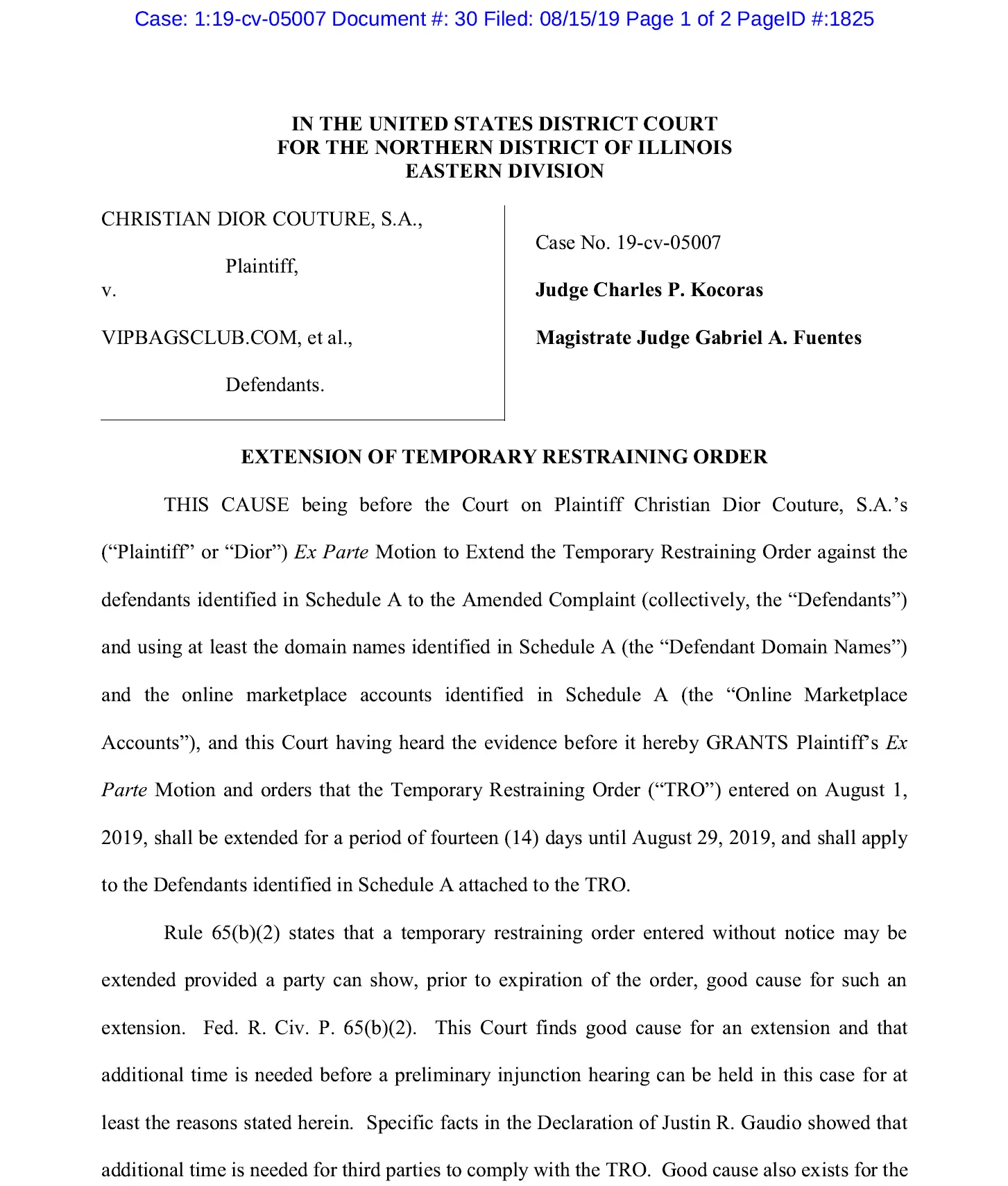 Christian Dior v Sellers, Case No. 19-cv-5007