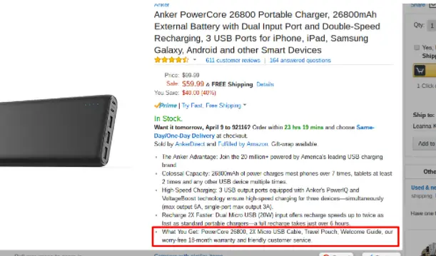 Anker is one of the top sellers on Amazon. Here’s what their warranty looks like on their website: